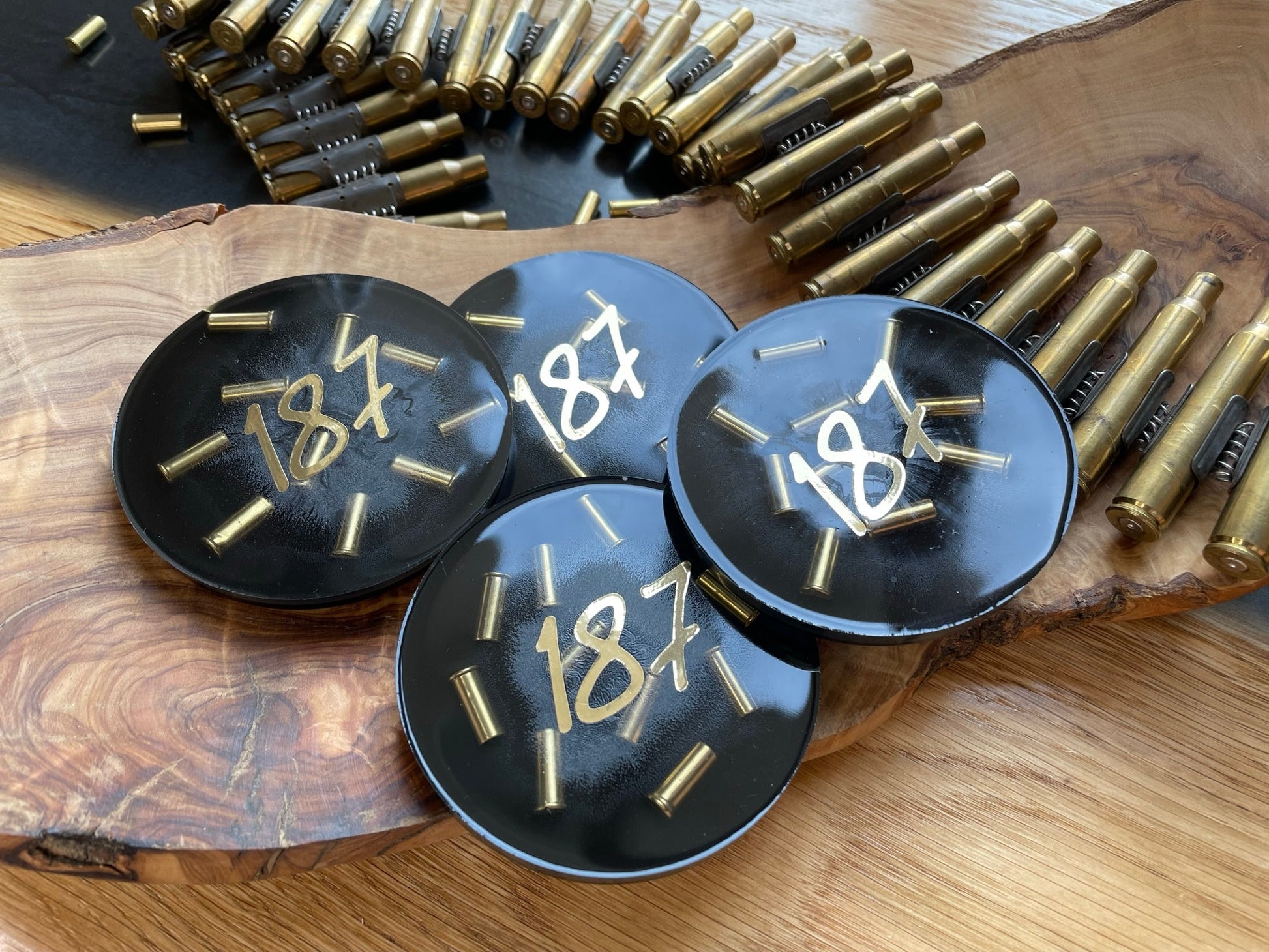187-Untersetzer aus Epoxidharz-Männer Geschenk-Jäger-Soldier-Army-Military-Bundeswehr-Ammo-Bullet-Resin-Shotgun-Patronen-Party-Waffen-Gun