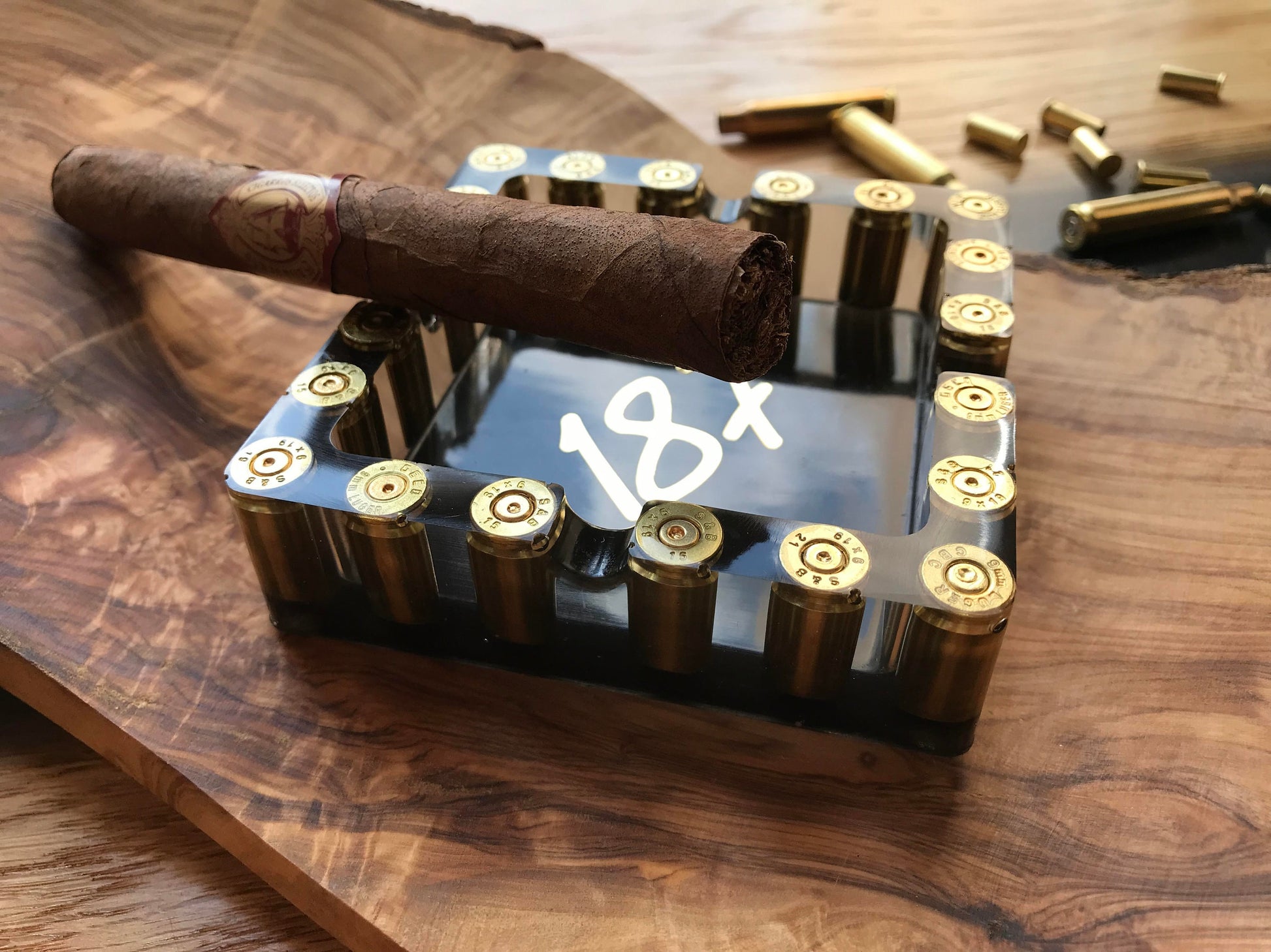 Aschenbecher aus Epoxidharz 187 Männer Geschenk Geschänk zum Vatertag Jäger Soldier Army Military Bundeswehr Ammo Bullet Resin Shotgun Patronen Terasse