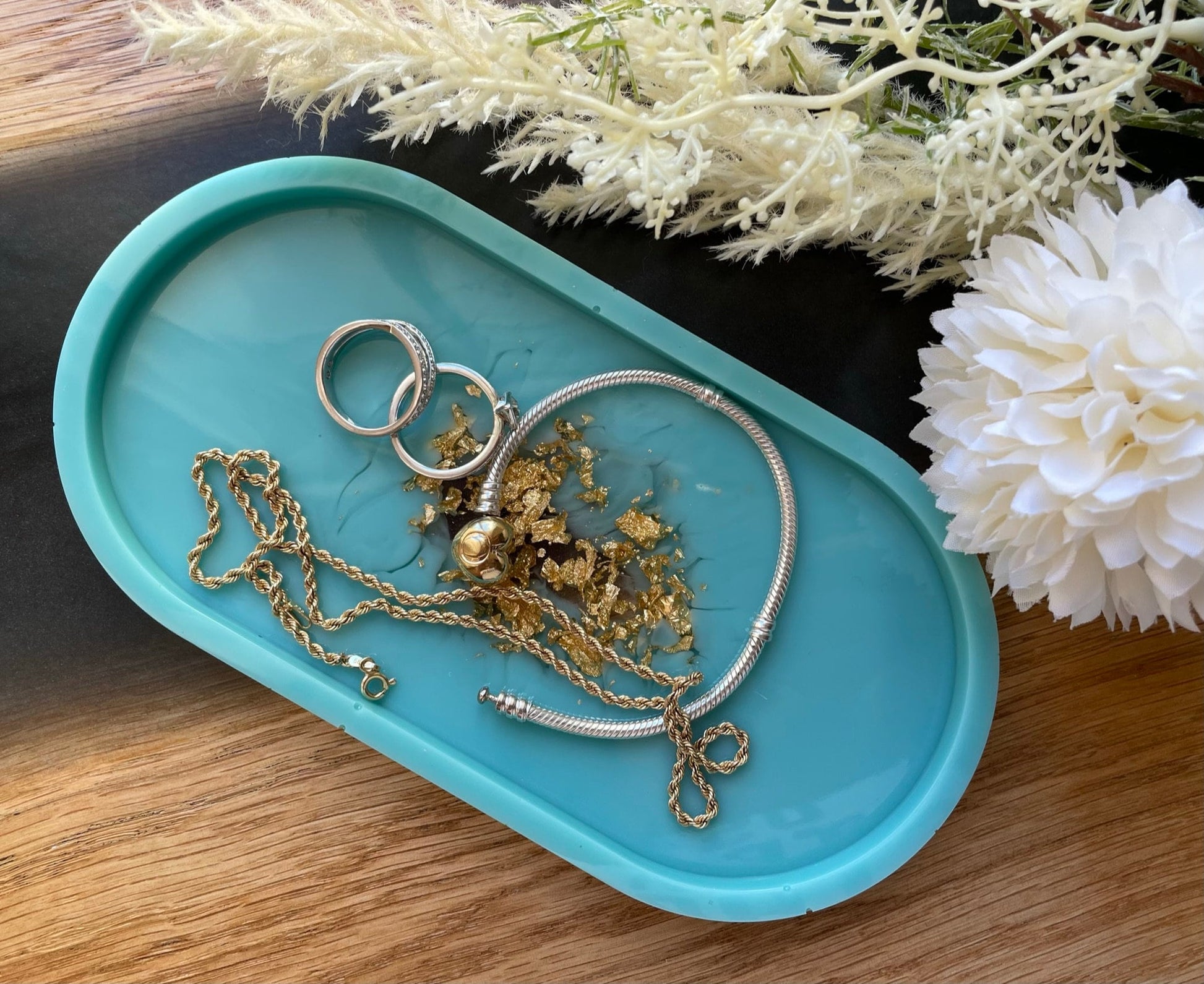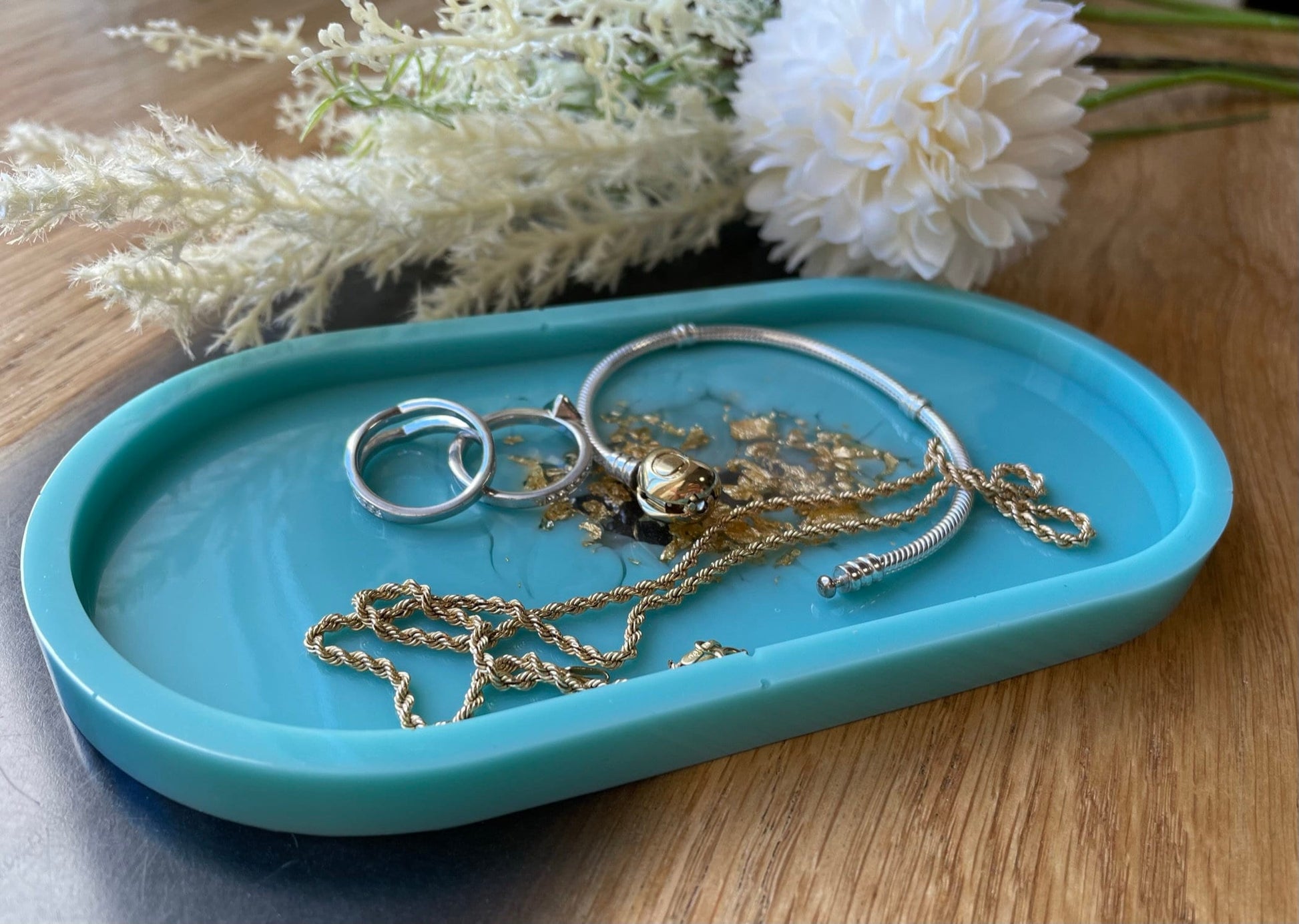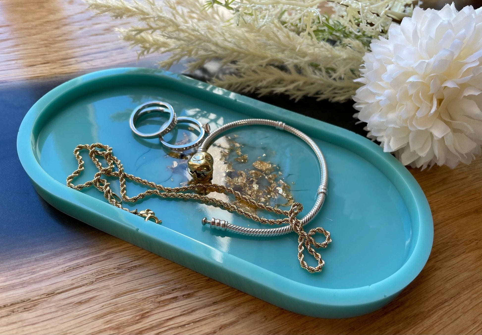 Schmuckschale / Tray aus Epoxidharz - Türkis - Gold