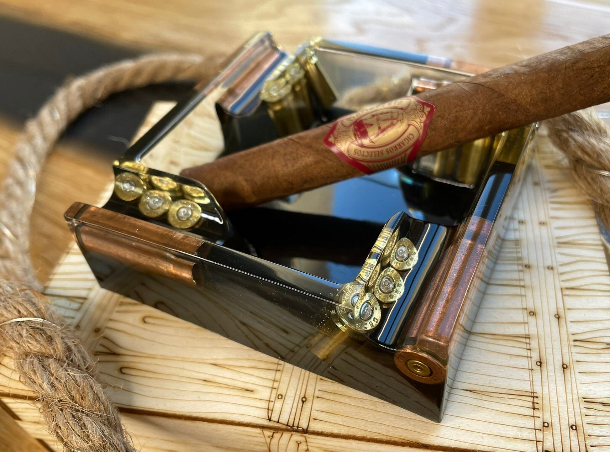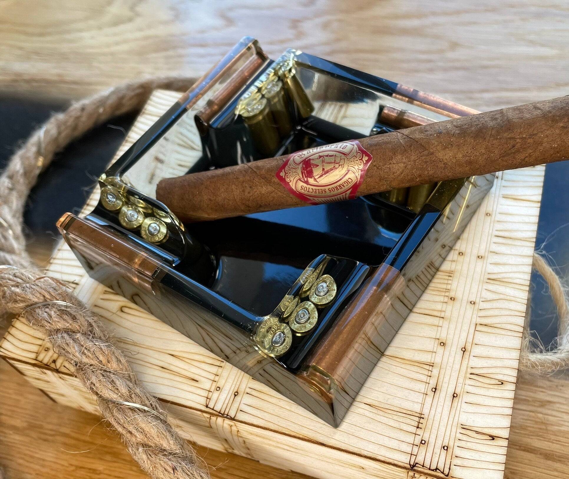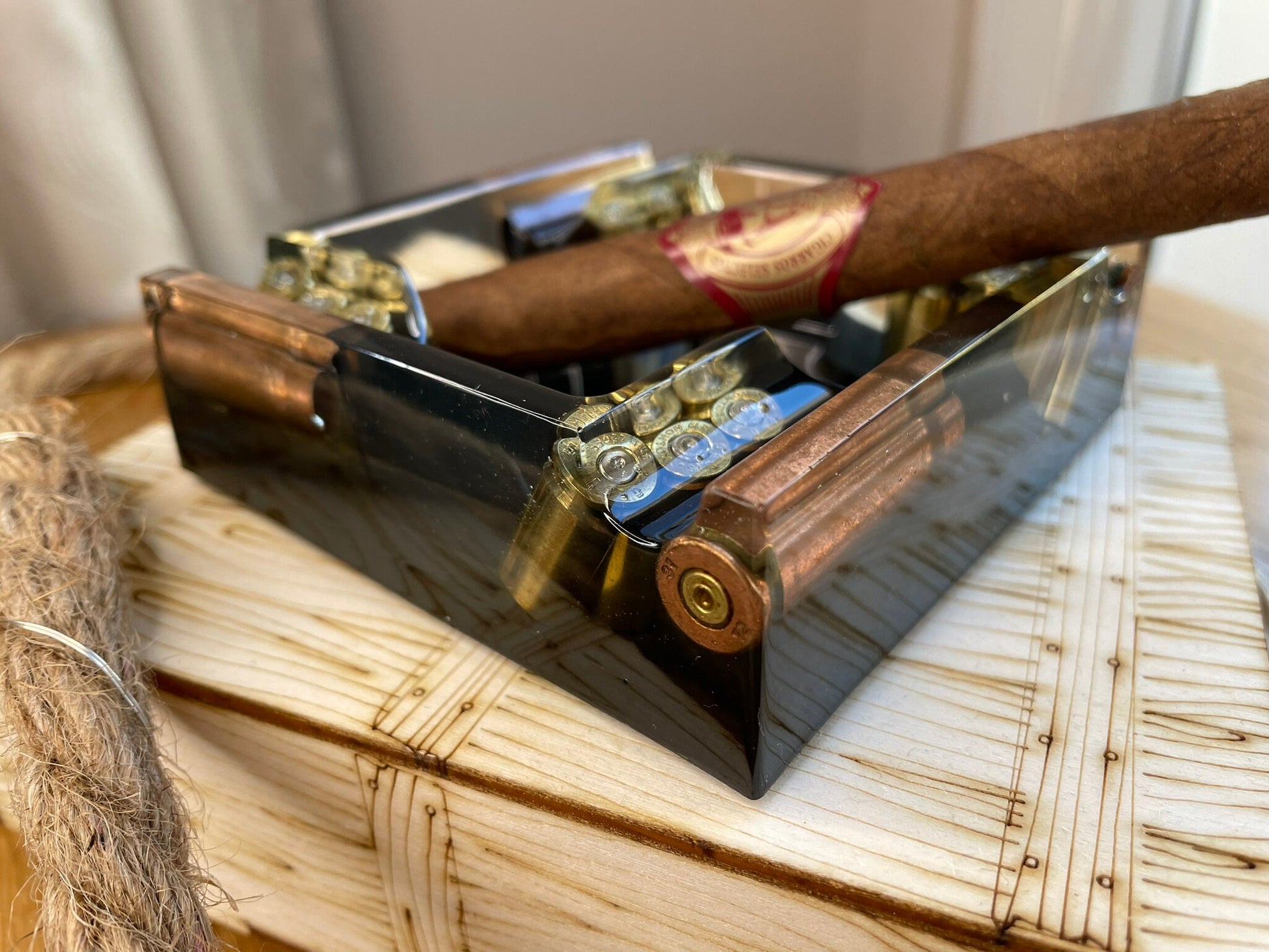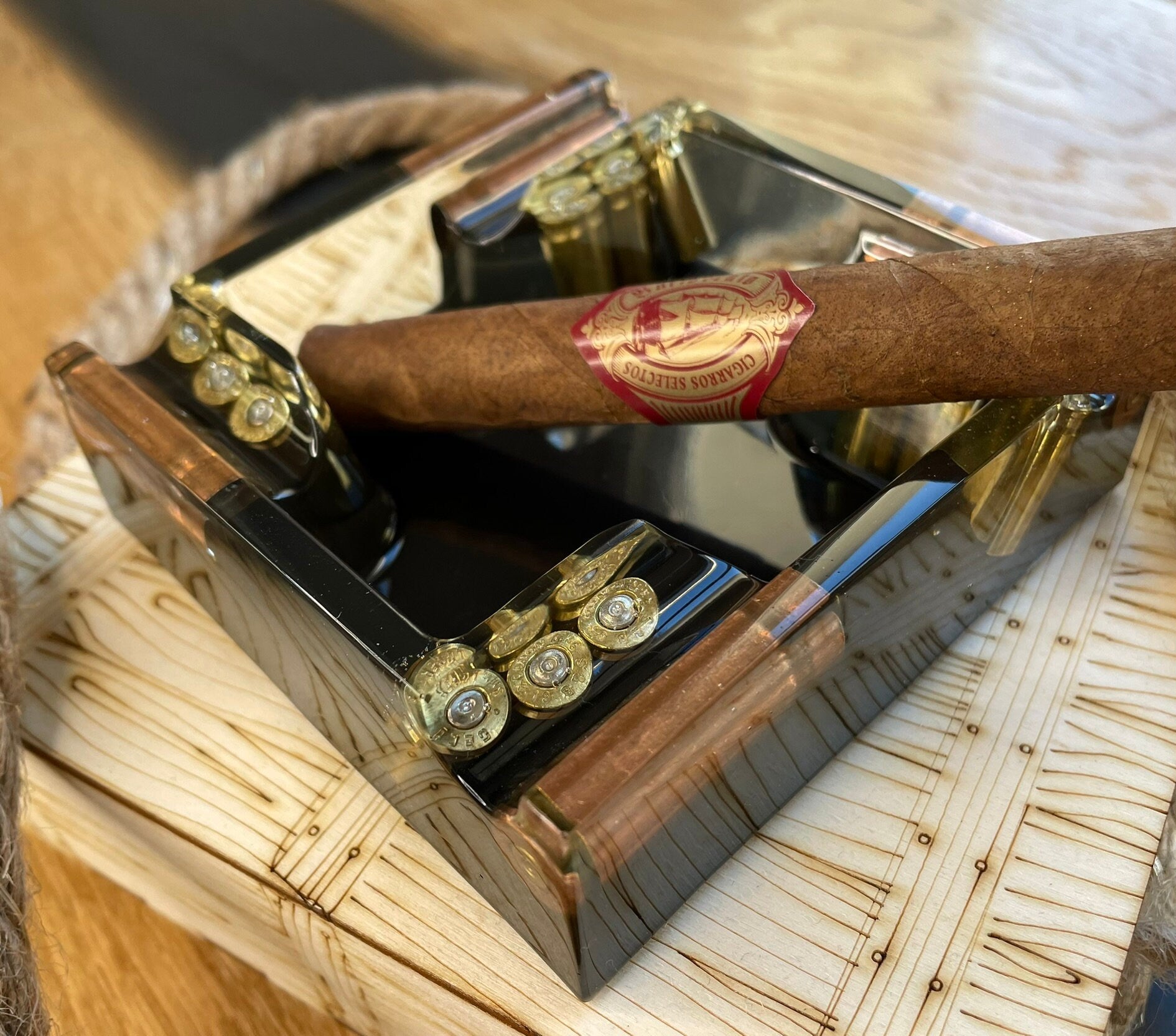 Epoxy resin asian with bullet casings.