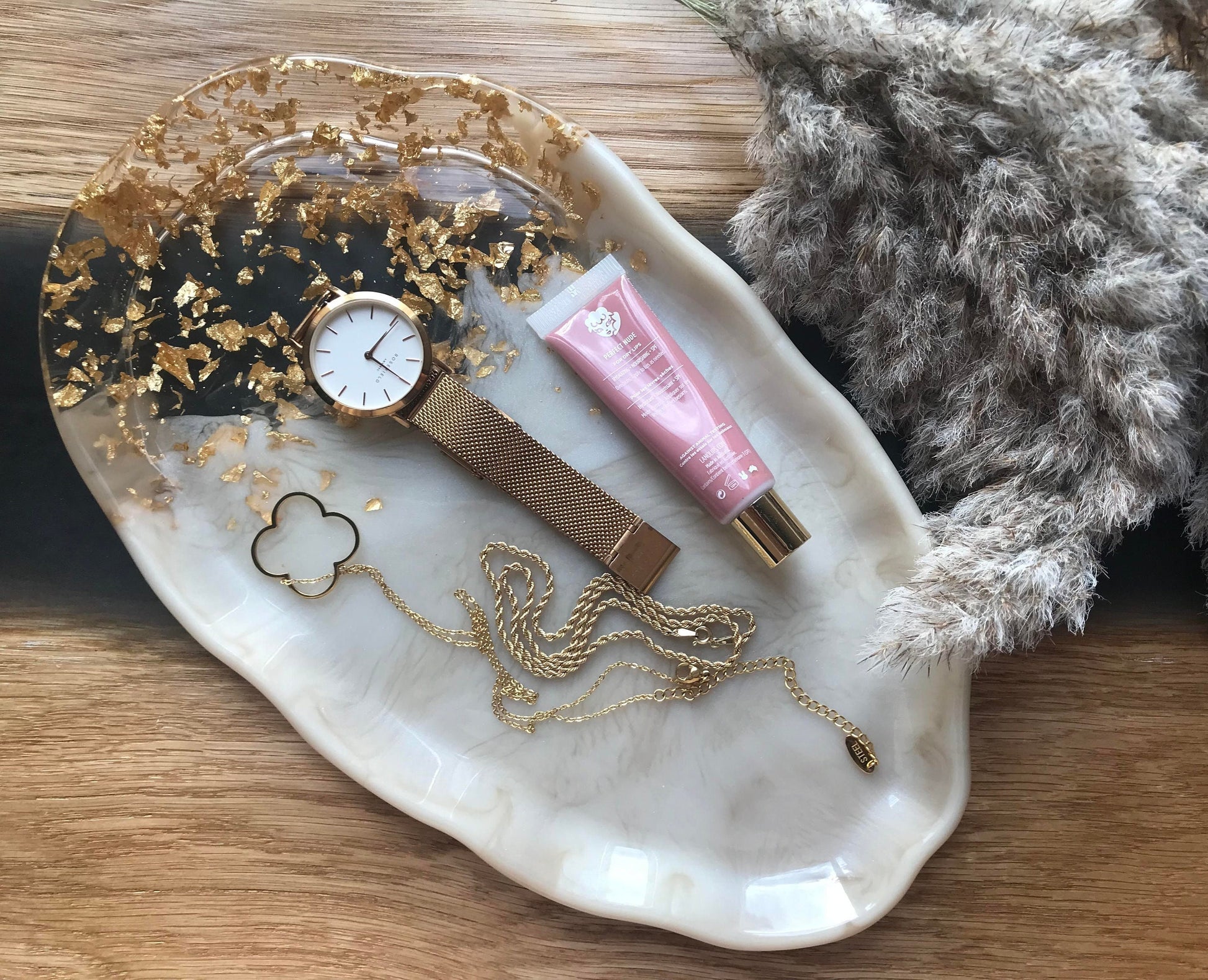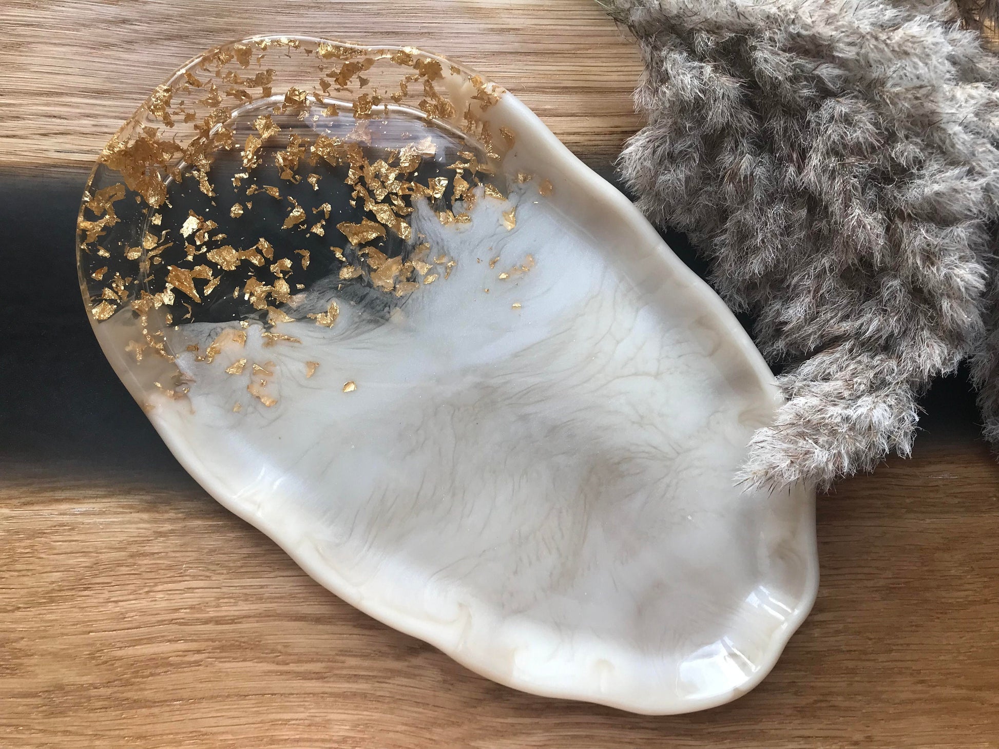 Tablett / Dekortablett / Schmuckschale / Schale / Dekorschale / Epoxidharz / Marmoroptik / Gold / Beige / Hochzeit / Deko / Geschenke / Home