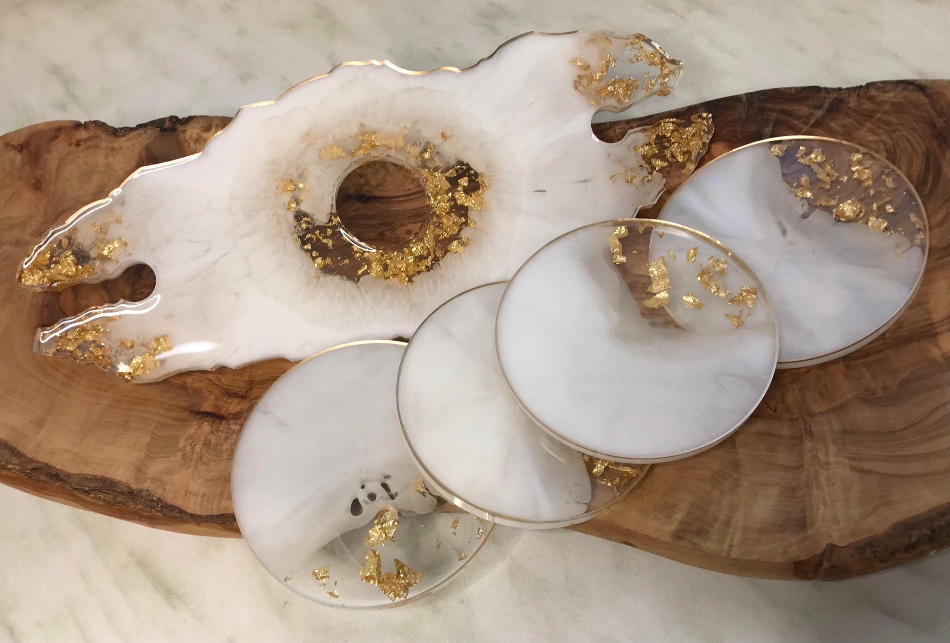 Glass holder / wine butler with 4 matching coasters made of epoxy resin.