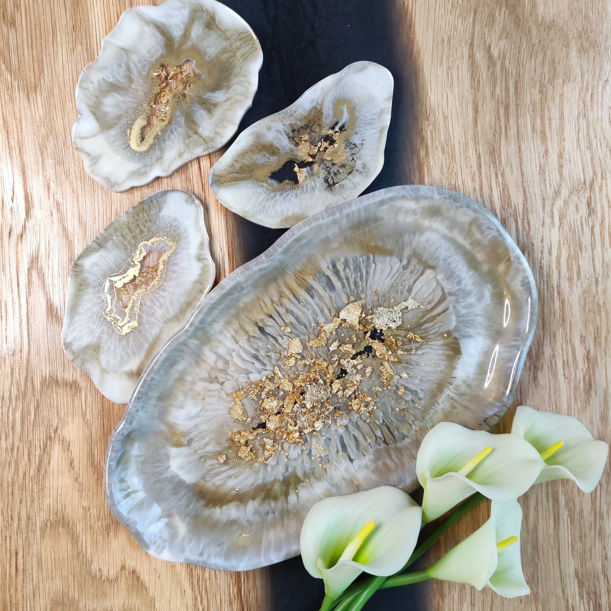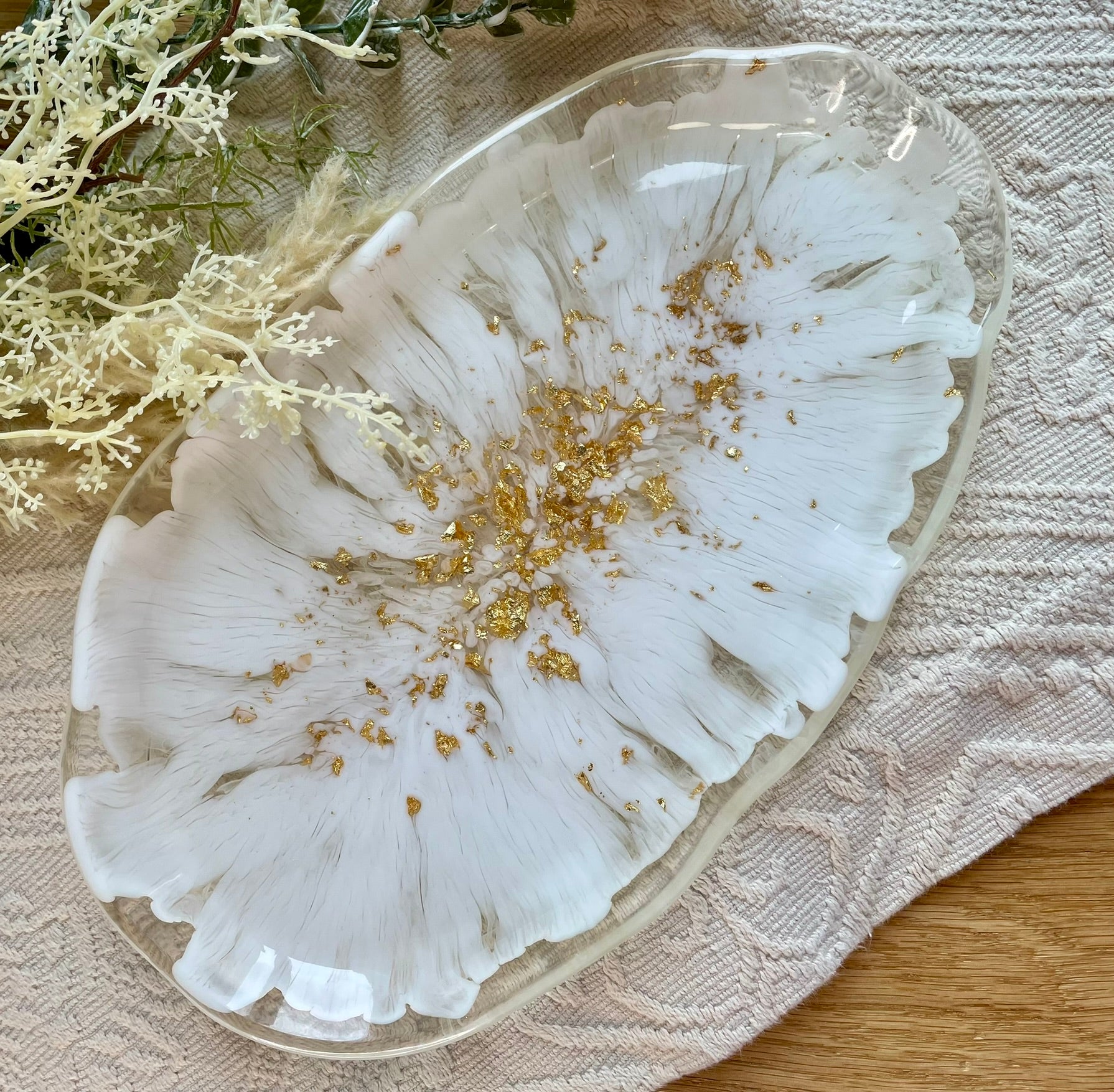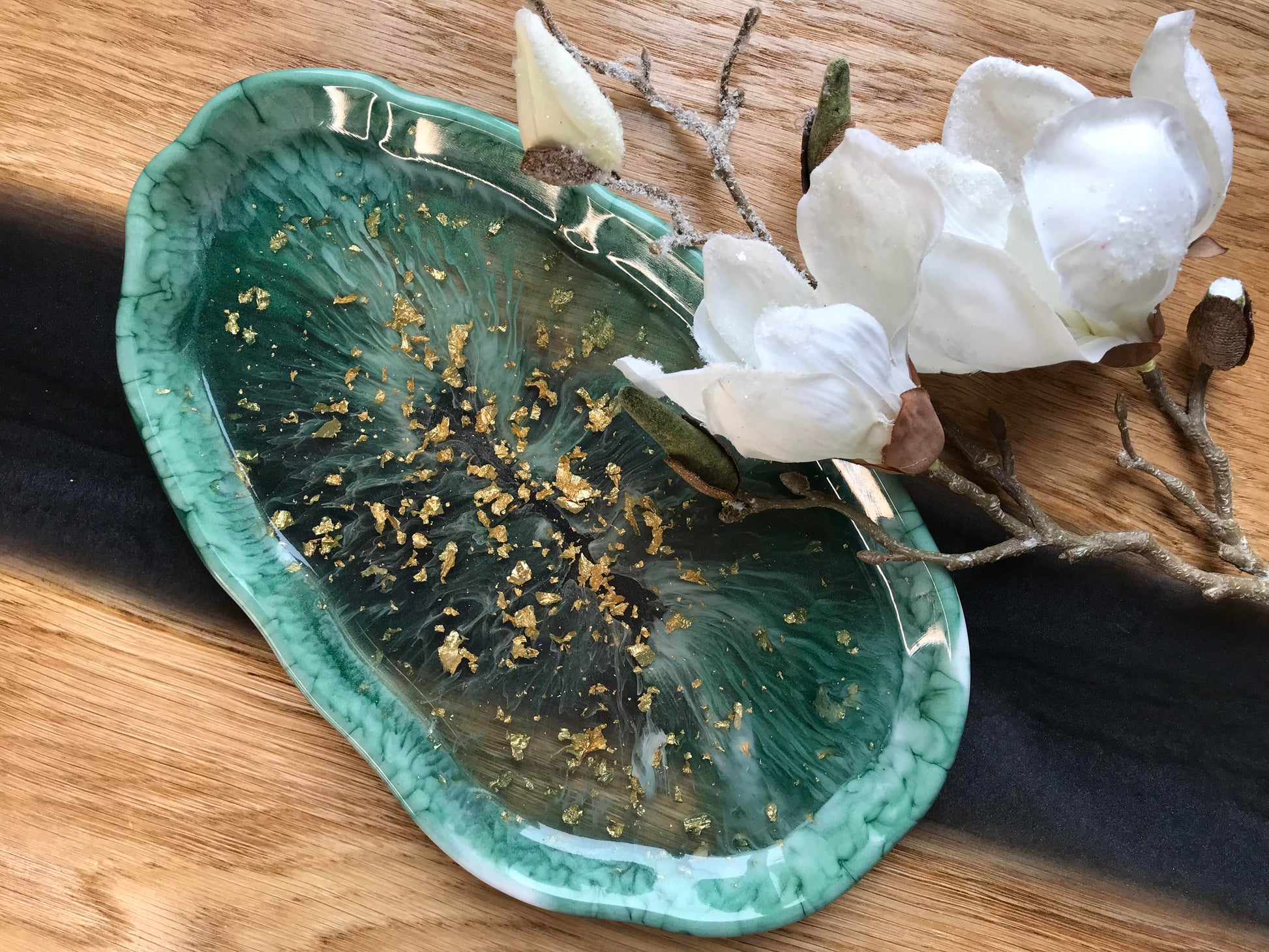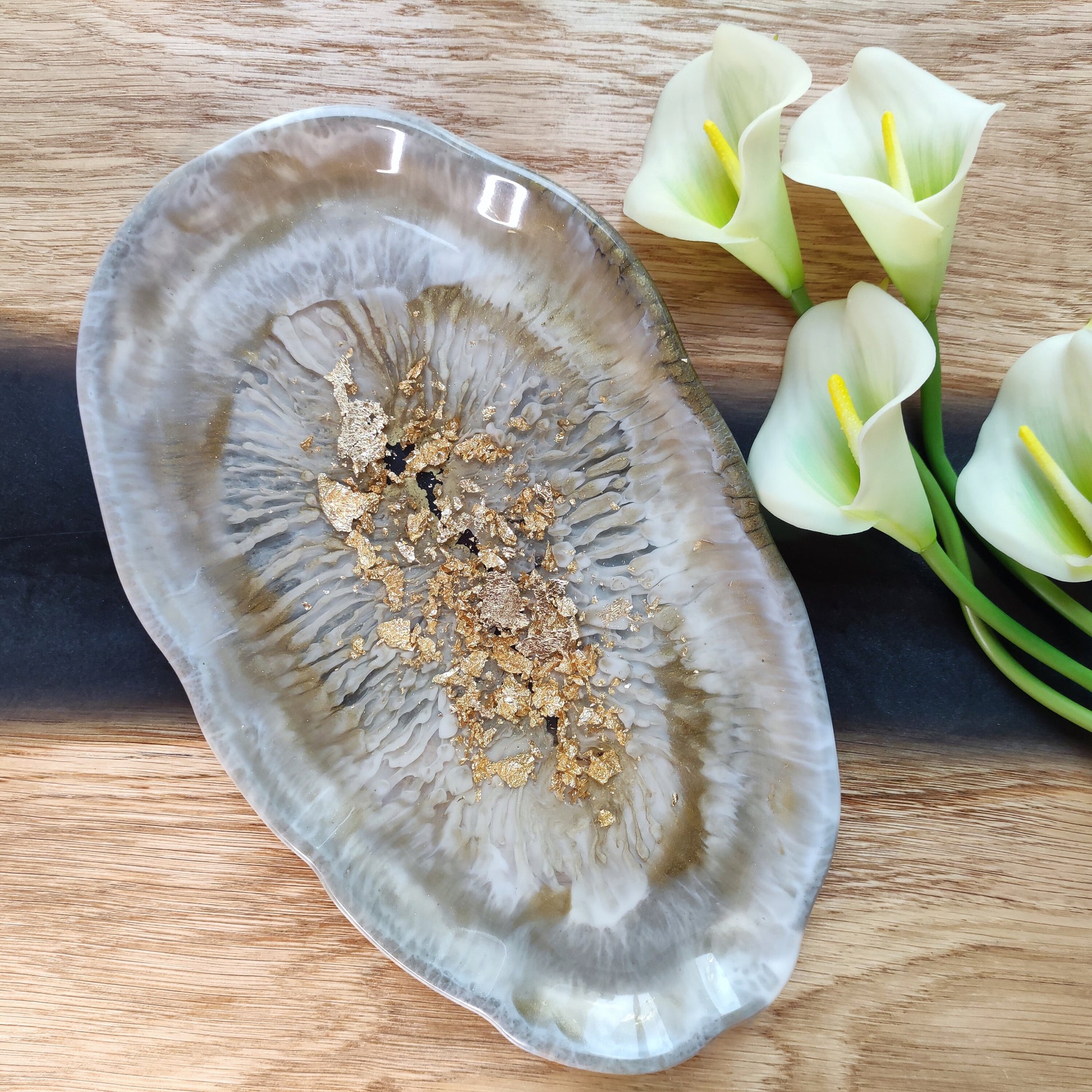 Elegantes Deko-Tablett aus Epoxidharz mit Gold-Details ✨